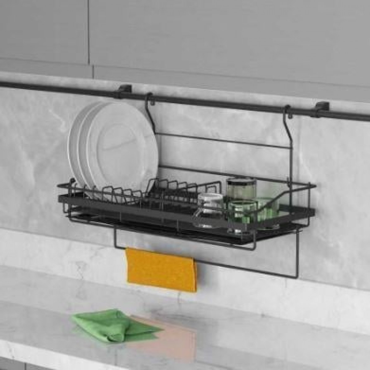 Starax 4020 Askılı Tabaklık Bardaklık Seti Antrasit